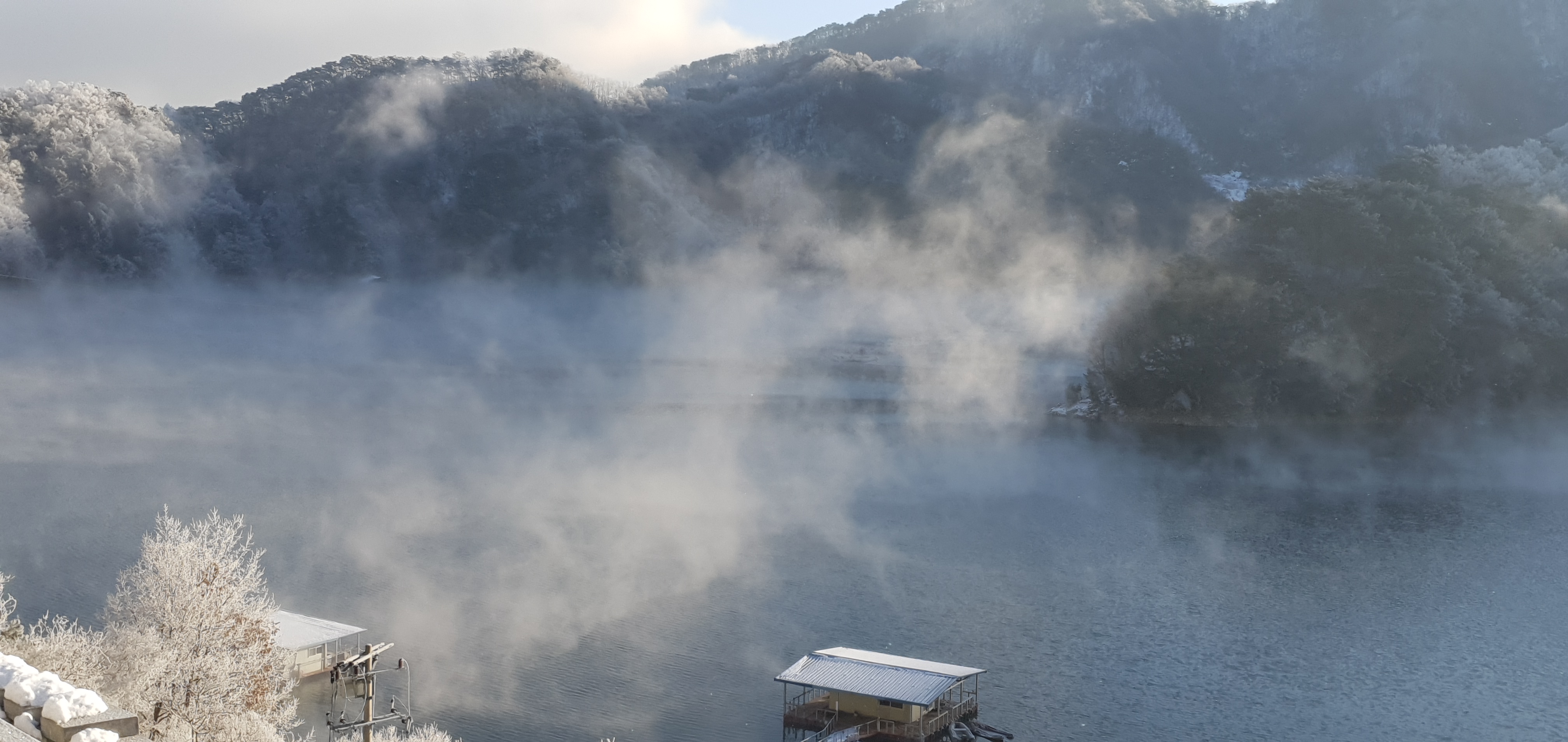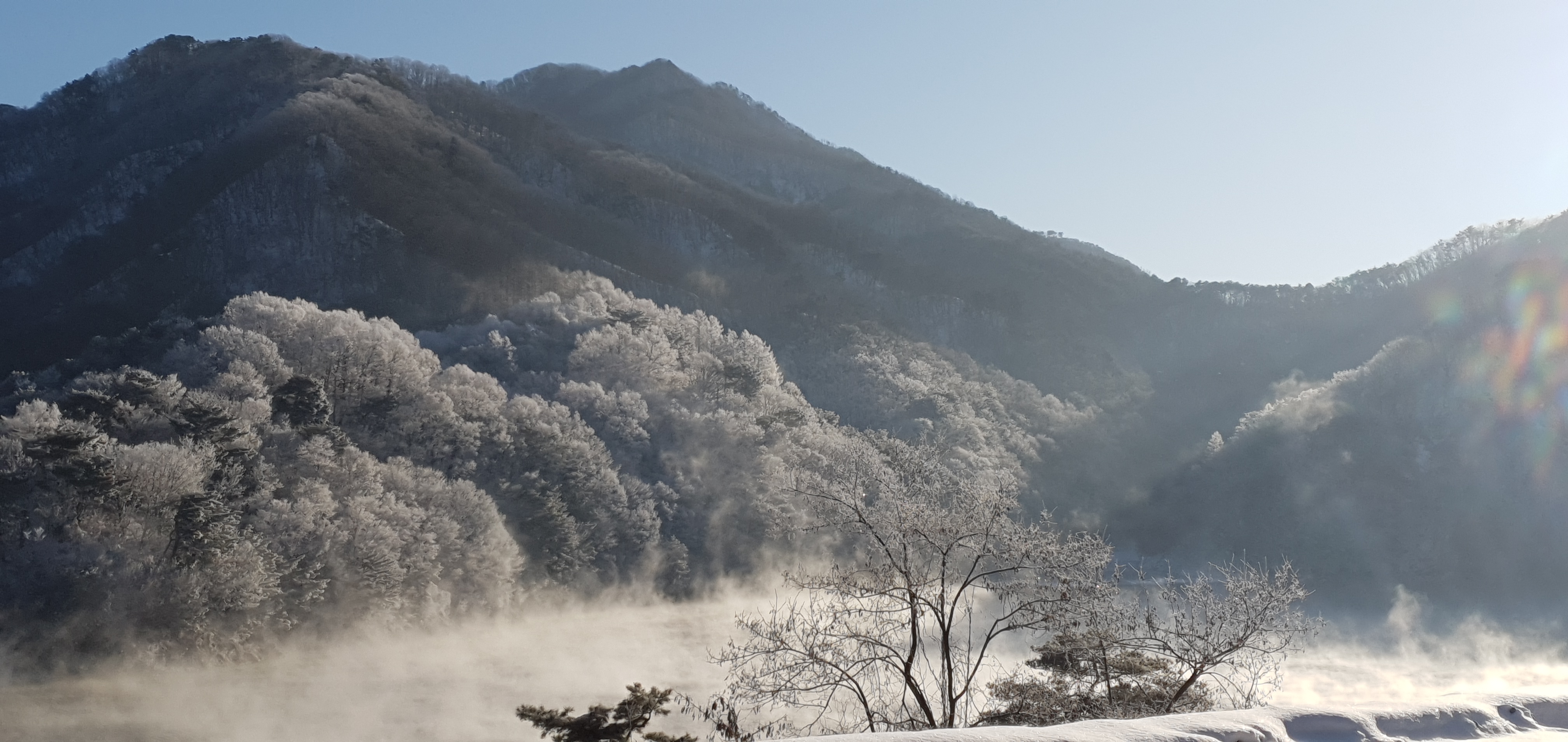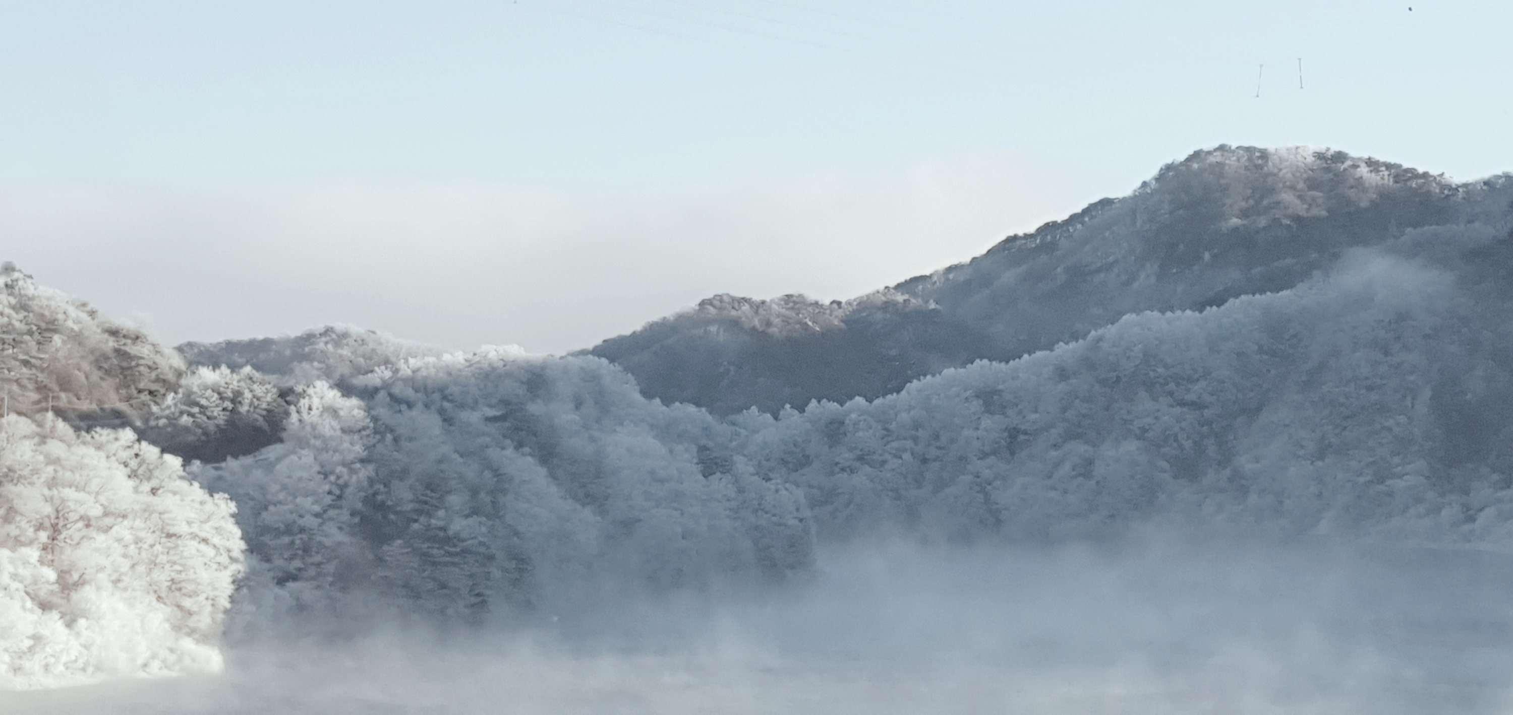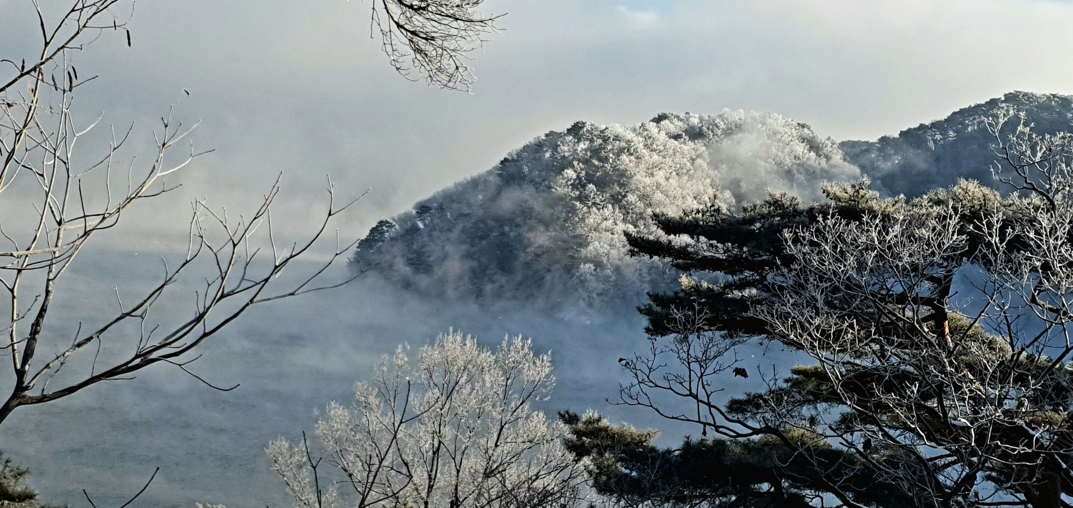 This place(Hwacheon, Gangwon-do) is one of the coldest regions in Korea. The scenery of the lake in summer is beautiful, but it is also a place where you can't miss the joy of appreciating Sanggodae, which bloomed in winter. When the water fog blooming in the morning and the frozen Sanggodae are combined, it feels like the main character of the Frozen Kingdom.